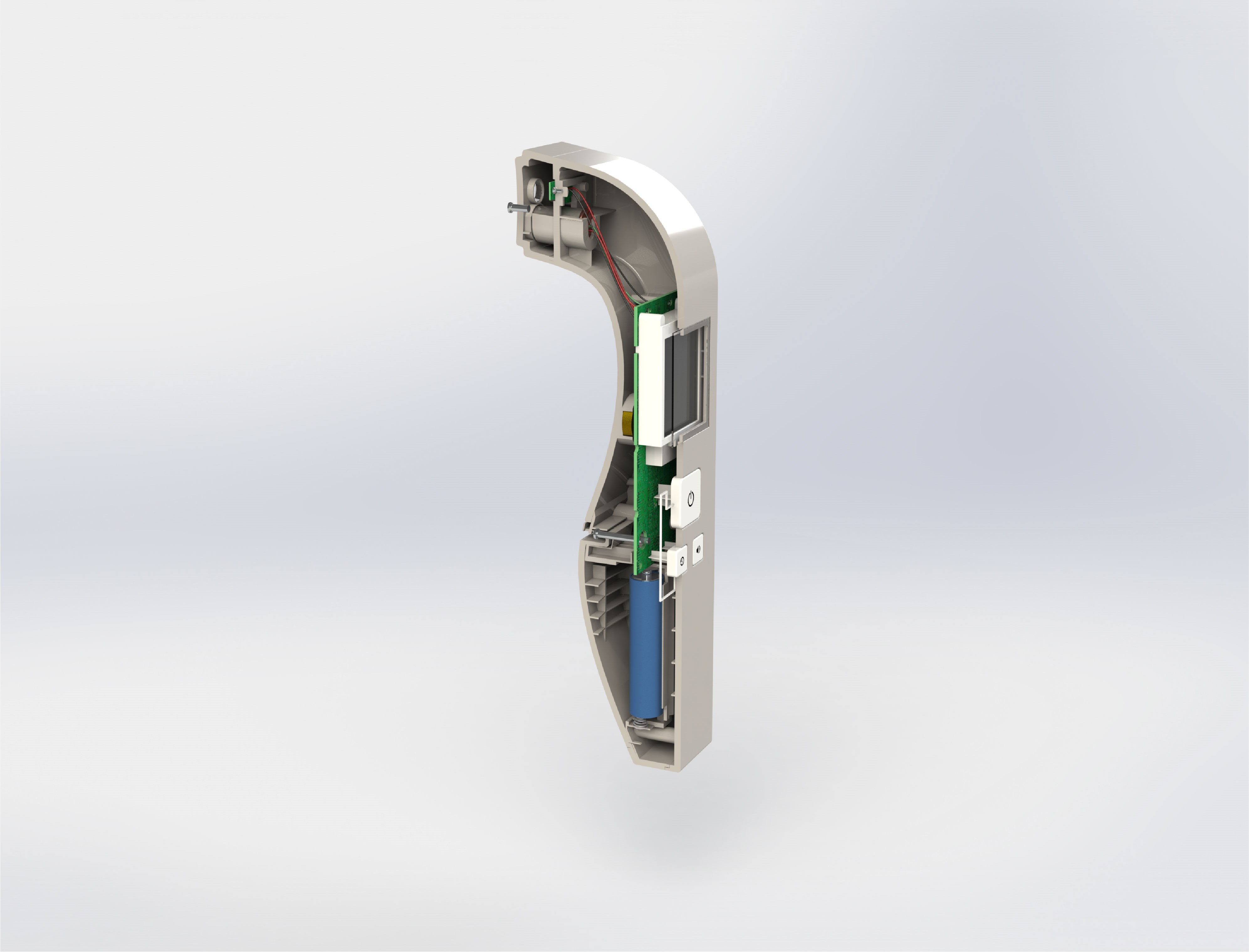 The main objective for the design was that it was to be manufactured from injected moulded plastic and incorporate electronic circuitry and components.