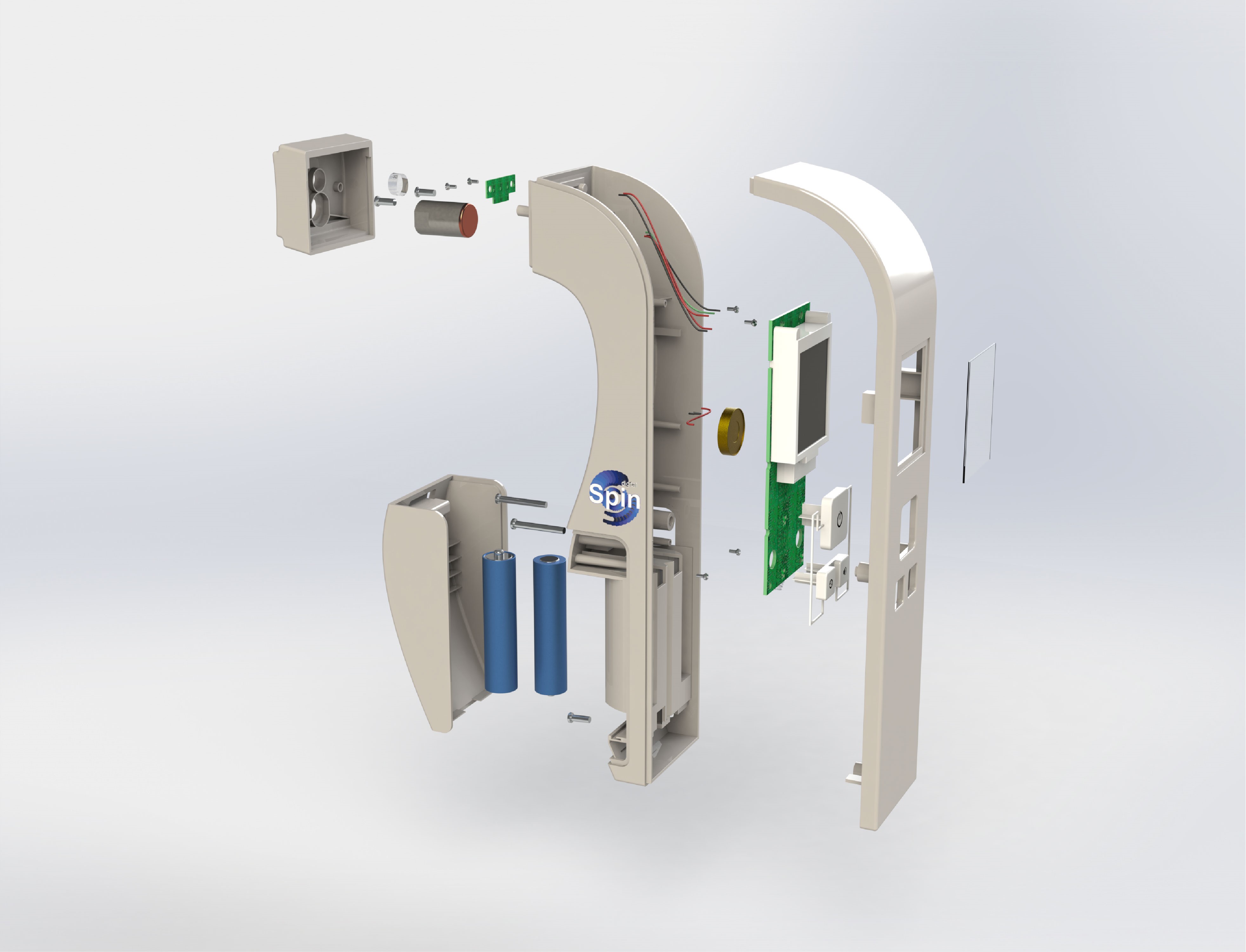 The selected thermometer had to be rebranded to Spin Digital – a fictitious electronics company. The final assembled product had to also be small and fit within a box with dimensions no longer than 200mm and dimensions X + Y + Z equal to more than 100mm and less than 300mm.