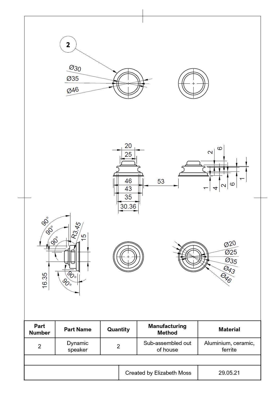 Using these identified problems, I redesigned the speaker to make the manufacturing and assembly processes more efficient. I also wished to improve the sound quality of the speaker.